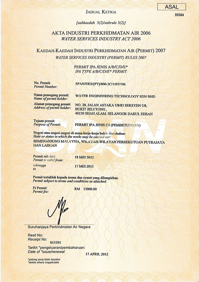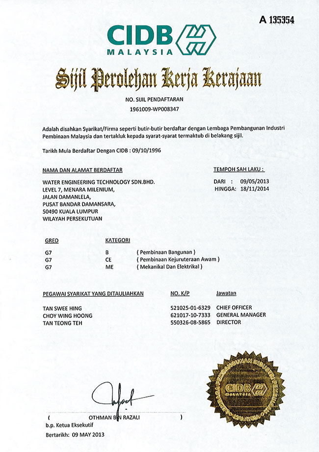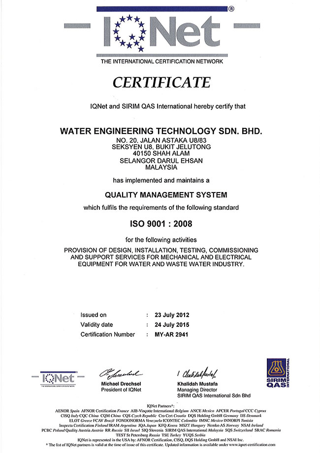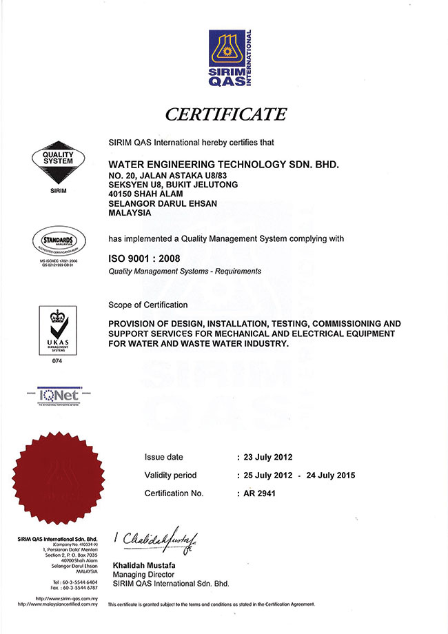 As a specialist engineering organization, WET seeks to consistently provide the highest standard of service to all our clients. In pursuit of consistent and internationally recognized quality in our services, WET has obtained the following licences and international accreditations for its services and corporate management: