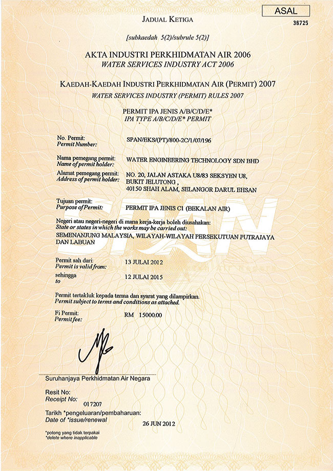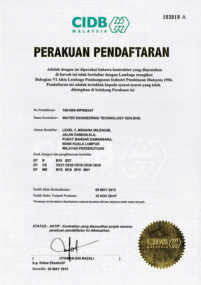 As a specialist engineering organization, WET seeks to consistently provide the highest standard of service to all our clients. In pursuit of consistent and internationally recognized quality in our services, WET has obtained the following licences and international accreditations for its services and corporate management: